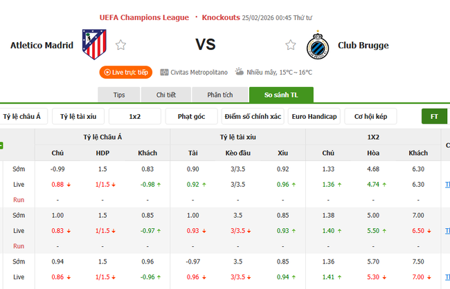 Trên đây là những nhận định và soi kèo bóng đá chuyên sâu cho màn thư hùng giữa Atletico Madrid vs Club Brugge, 0h45 ngày 25/02/2026.