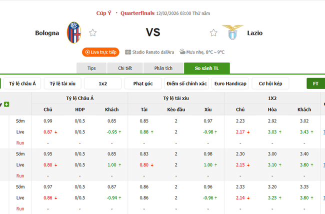 Trên đây là những nhận định và soi kèo bóng đá chuyên sâu cho màn thư hùng giữa Bologna vs Lazio, 03h00 ngày 12/02/2026.