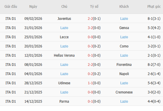 Phong độ của Lazio