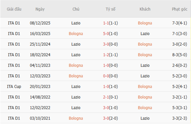 Thành tích đối đầu quá khứ giữa Bologna vs Lazio