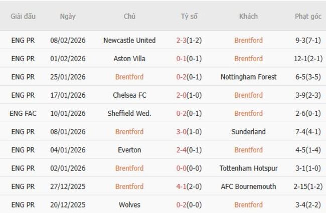 Phong độ của Brentford