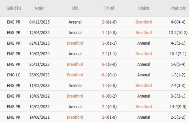 - Kết quả chung cuộc: Brentford 0-1 Arsenal