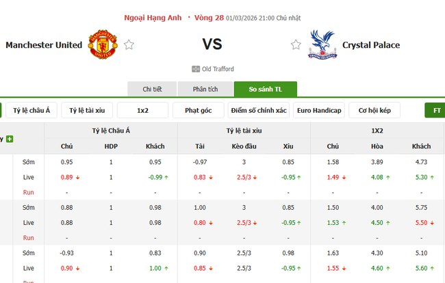 Trên đây là những nhận định và soi kèo bóng đá chuyên sâu cho màn thư hùng giữa Man United vs Crystal Palace, 21h00 ngày 01/03/2026.