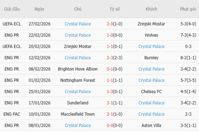Chiến thắng 2-0 trước Zrinjski Mostar hôm thứ Năm - nhờ các bàn thắng của Maxence Lacroix và Evann Guessand - giúp Crystal Palace tiếp tục hành trình chinh phục vinh quang châu lục, đồng thời cũng là chiến thắng thứ hai liên tiếp của họ sau khi giành chiến thắng sít sao 1-0 trước đội bóng cuối bảng Wolverhampton Wanderers.