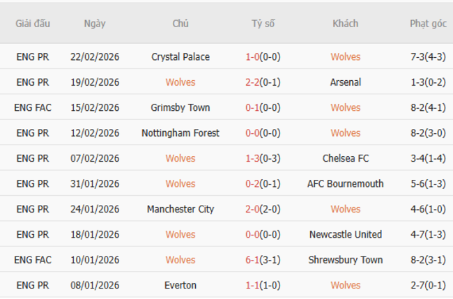 Wolves sẽ bước vào trận đấu này sau thất bại sít sao 1-0 trước Crystal Palace, với bàn thắng duy nhất của trận đấu do Evann Guessand ghi được ở những phút cuối, nhưng đó vẫn là một màn trình diễn tích cực khác từ đội bóng đang đứng cuối bảng xếp hạng.